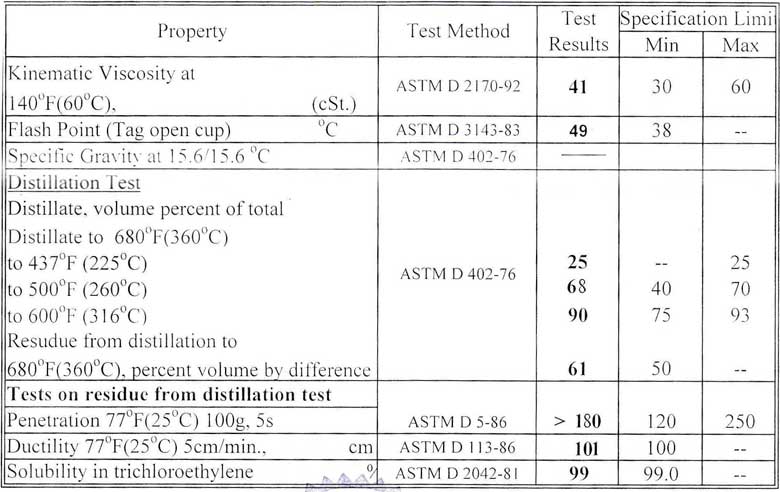Cutbacks are divided into two classifications, Rapid-Curing (RC) and Medium-Curing (MC) depending on the solvent used. They are further defined by a number which indicates the minimum kinematic viscosity (fluidity) of the cutback.